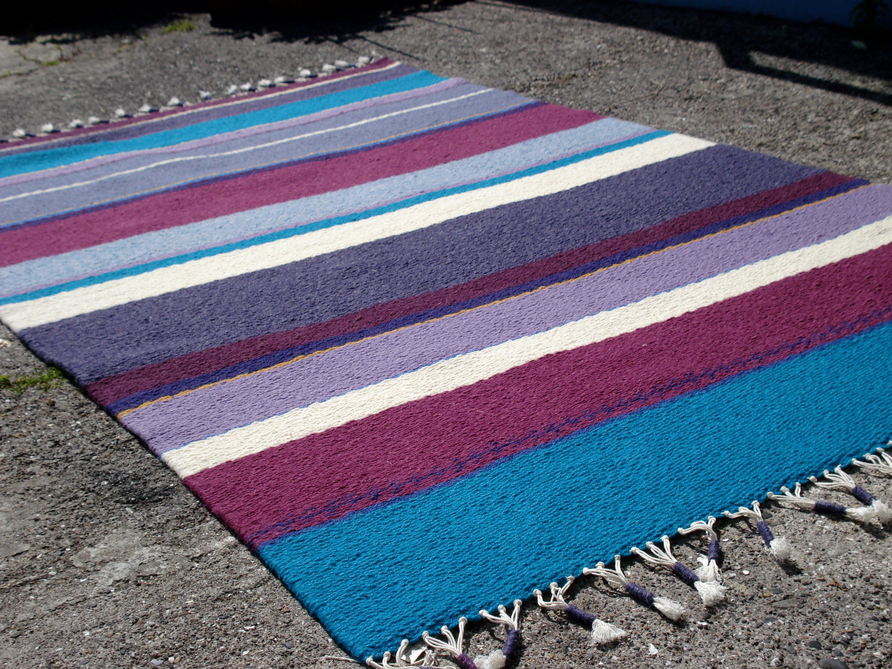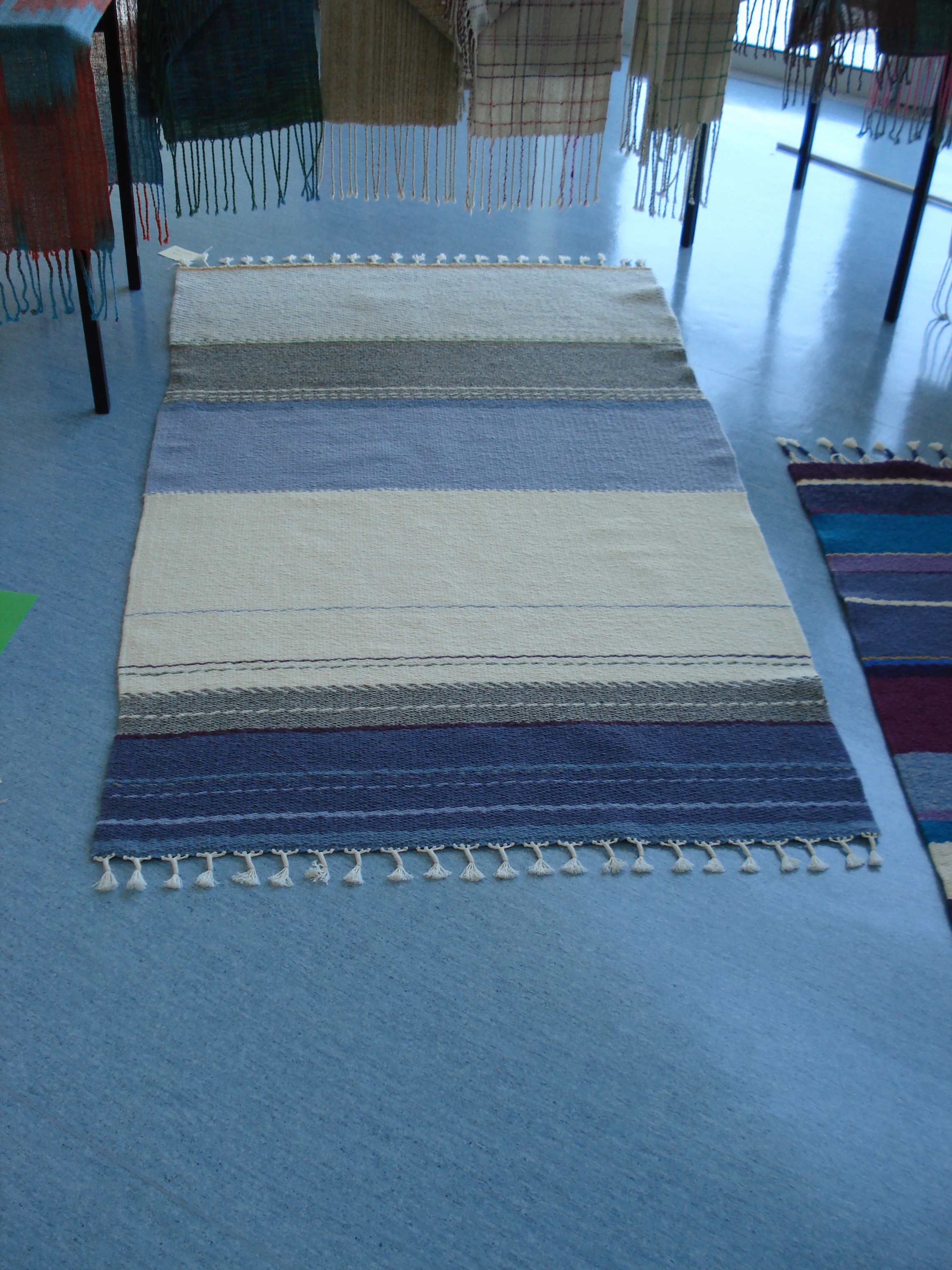 Each woven rug is unique in itself. If you want something similar, it will have significant change built into it. My floor and wall rugs incorporate both a variety of techniques and textures and an individual use of colour.