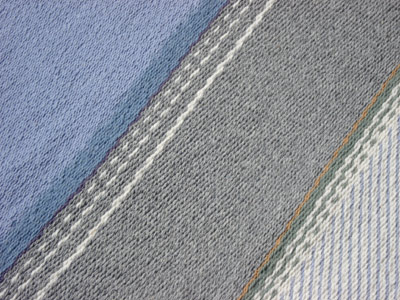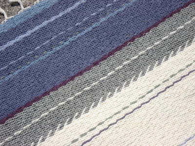 Kerry Sky Mood 1 This weft-faced rug measures 110 cms x 180 cms. It is made of triple ends of Axminster wool yarn on a cotton warp. The inspiration for this rug comes from the skies here in Kerry. Click on image to enlarge.