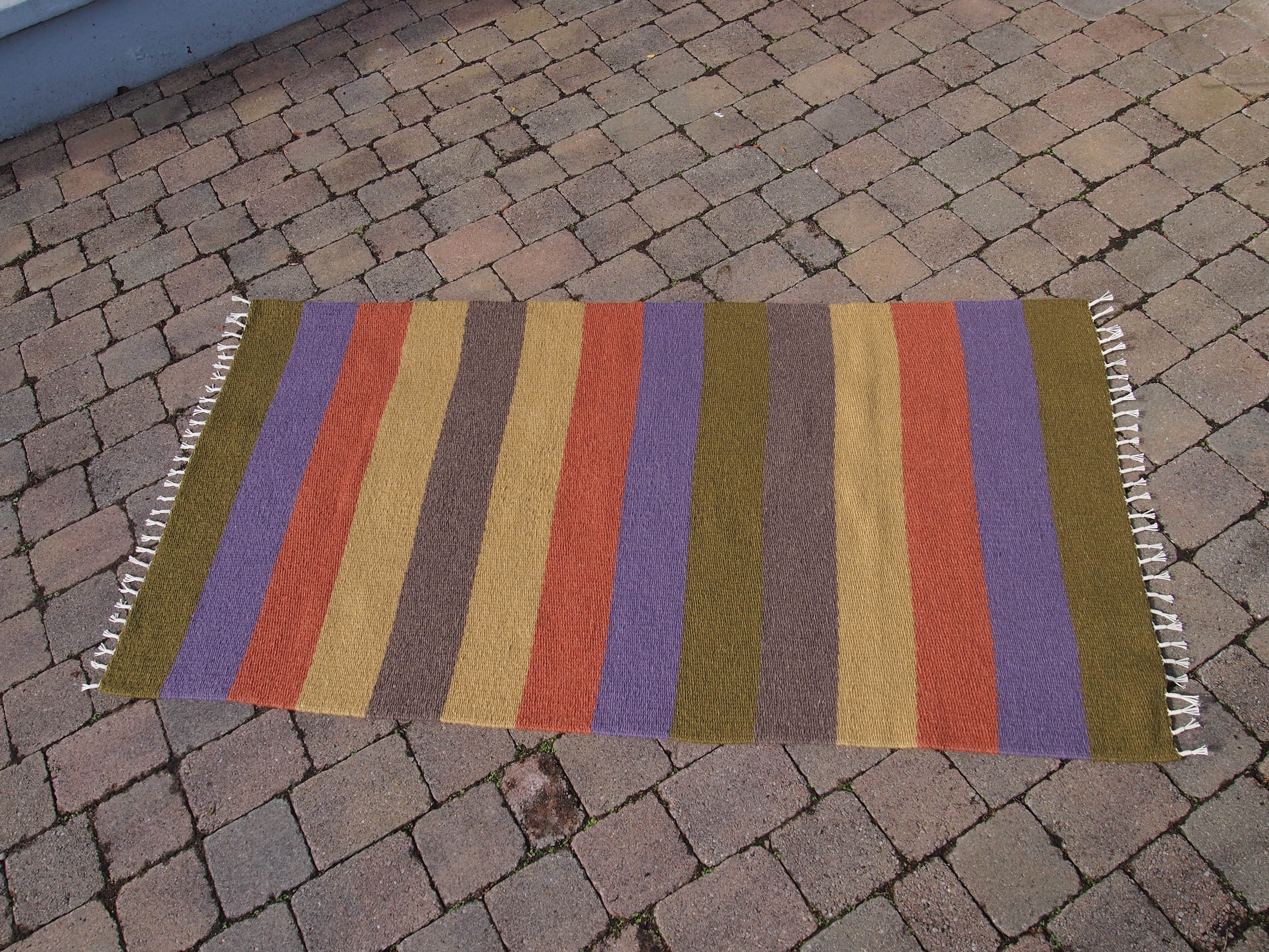 Simple banded colour rugs have literally endless possibilities and are very effective irrespective of whether they are made from wool or rags or cotton. From colour combinations to random or balanced bands. I tend to prefer more random use of colour and less regular banding. The joy of commissioned work is that the buyer can use their own creativity to make these decisions.